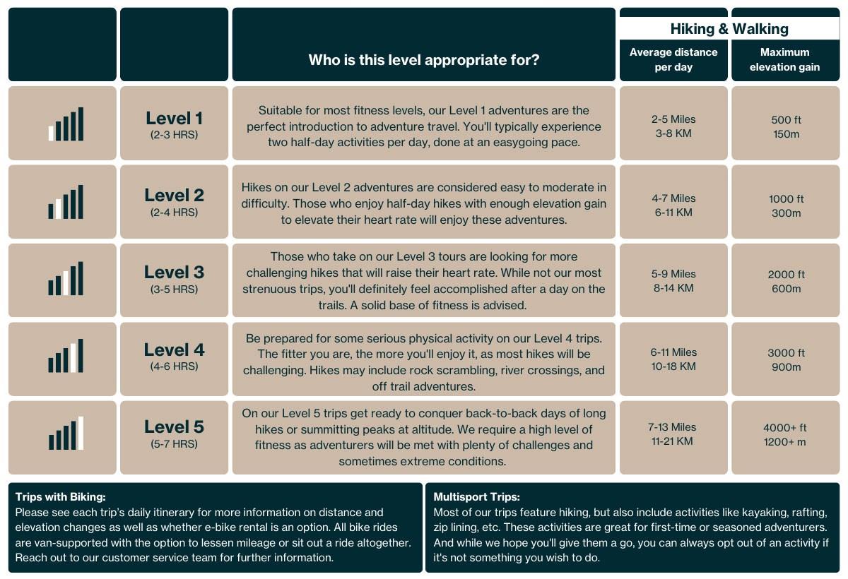 Today our fully guided, small group trips feature not only hiking but rafting, kayaking, and so much more, with unique itineraries in 19 countries across five continents, including destinations such as New Zealand, Patagonia, Peru, Galapagos Islands, Europe, the Himalayas, and Africa.