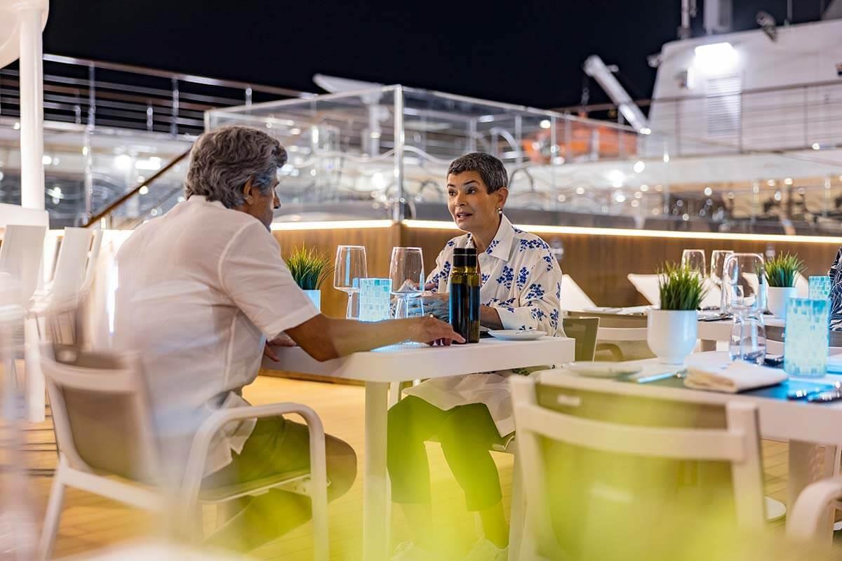 By day, 7AFT Grill serves a casual poolside lunch of tasty burgers, salads, flat breads and other classic favorites. By night, it transforms into an open-air chophouse for a Josper Grill dining experience. Savor the finest cuts of steak and fresh seafood, seared to perfection on a legendary Josper grill, the world leader in charcoal gastronomy. Exclusively on our Epicurean and Cultural Expeditions. Available when weather permits.